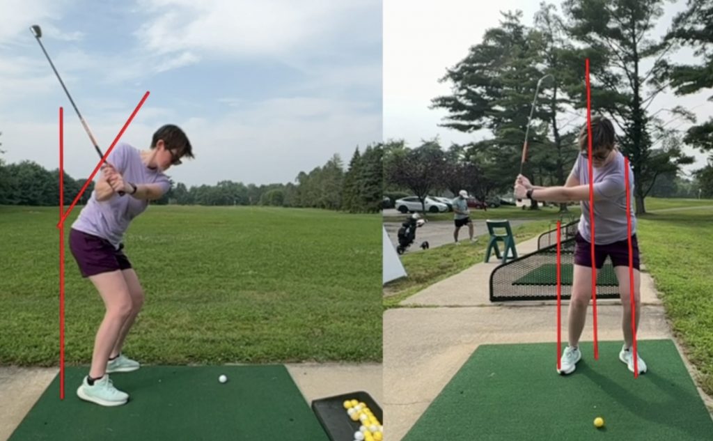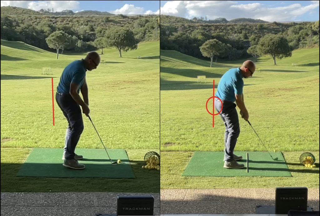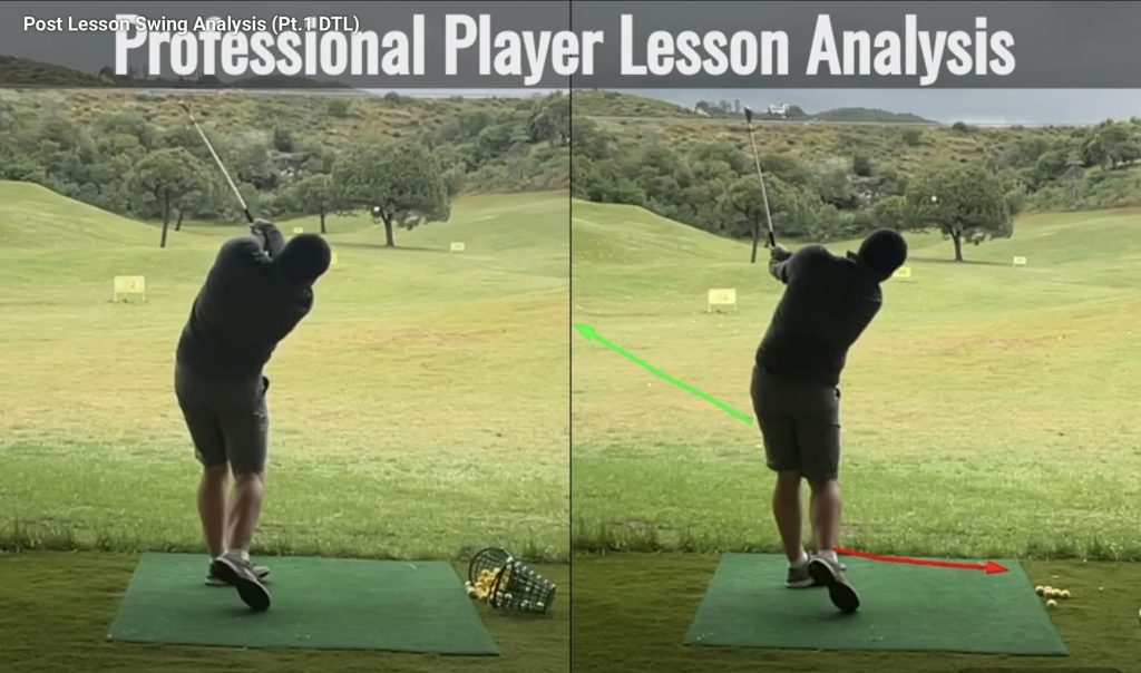 Changes involved altering the loading pattern in the backswing pivot to create a downswing kinematic sequence that loaded the club to increase speed and contact. Changes evident here at P5.