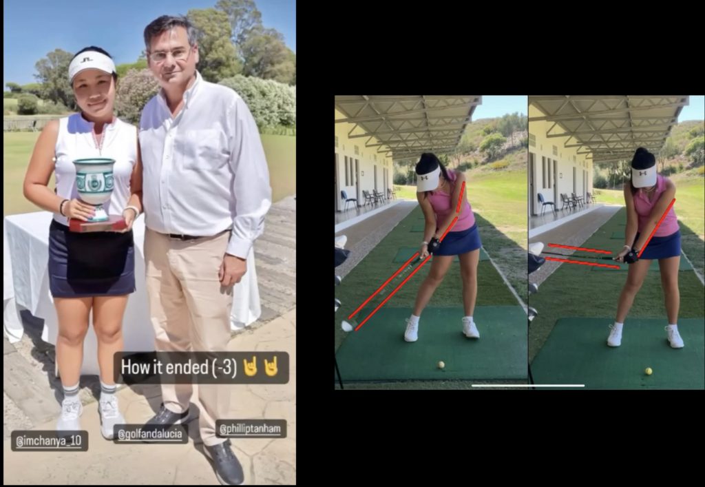 Competitive player Ralf collecting a trophy on the left and swing work at the European Nations Cup on the right. Inside the top 400 in the WAGR and 130mph Club head speed!